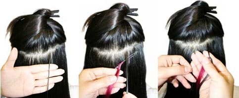 Step 5: Grip the micro ring by pliers and the hair extensions is now firmly applied on.