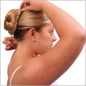 Step 4 Scoop the bottom clip into your bun securing the updo to your own hair.